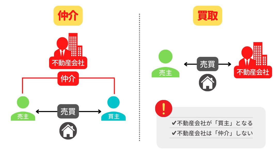 不動産買取とは、不動産会社に買主との間を仲介してもらうのではなく、直接買い取ってもらうという売却方法です。価格は仲介による売却と比較して落ちますが、現状のまま最短1週間ほどで売れるというメリットがあります。